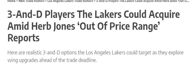 洛杉磯湖人在本賽季展現(xiàn)出不俗的競(jìng)爭(zhēng)力,目前戰(zhàn)績(jī)?yōu)?8勝7負(fù)穩(wěn)居西部第四,他們總能在困境中找到取勝之道,但光鮮戰(zhàn)績(jī)背后也暗藏一絲隱患。本賽季湖人場(chǎng)均失分116.7分,排在聯(lián)盟第19,116.5的防守效率排在聯(lián)盟第20.每當(dāng)比賽進(jìn)入白熱化的關(guān)鍵時(shí)刻,陣容的防守短板便暴露無(wú)遺——湖人缺乏一位防守強(qiáng)悍、且能穩(wěn)定命中空位三分的3D型邊鋒,這無(wú)疑將是制約他們沖擊總冠軍的瓶頸之一。權(quán)威記者馬克·斯坦爆料,湖人夢(mèng)寐以求的目標(biāo)是赫伯·瓊斯,但是鵜鶘的要求已超出湖人能承受的范圍。在赫伯·瓊斯求而不得的情況下,湖人的目光自然轉(zhuǎn)向了3D球員市場(chǎng)。盡管3D型側(cè)翼是聯(lián)盟的稀缺物,但仍有6位球員有望成為湖人的解決方案。一起看看這些交易方案的優(yōu)劣。